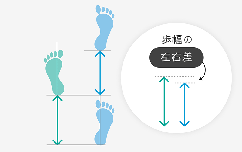 皆さんが良く知っている歩幅にも左右差があることをご存じでしょうか。歩幅は、足がついてもう一方の次の足が着いた場所までの進行方向への直線距離である、と第2回目のコラムでお話ししました。